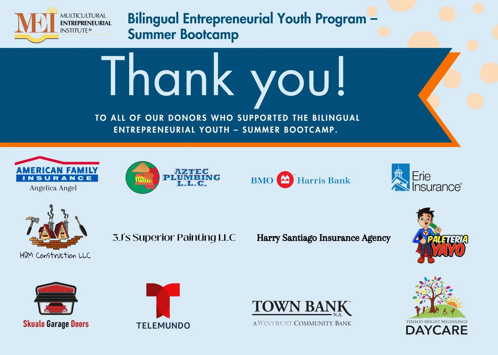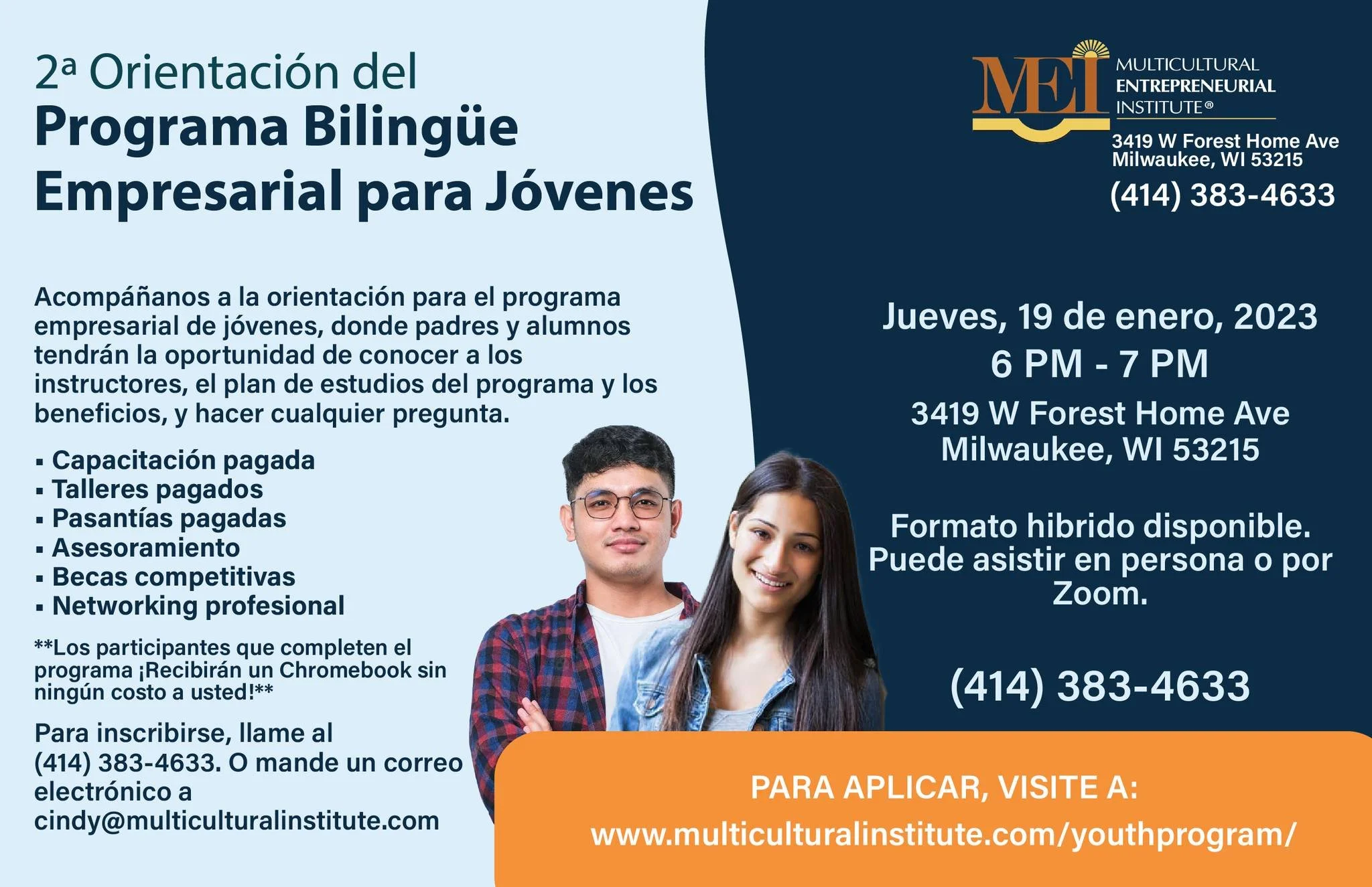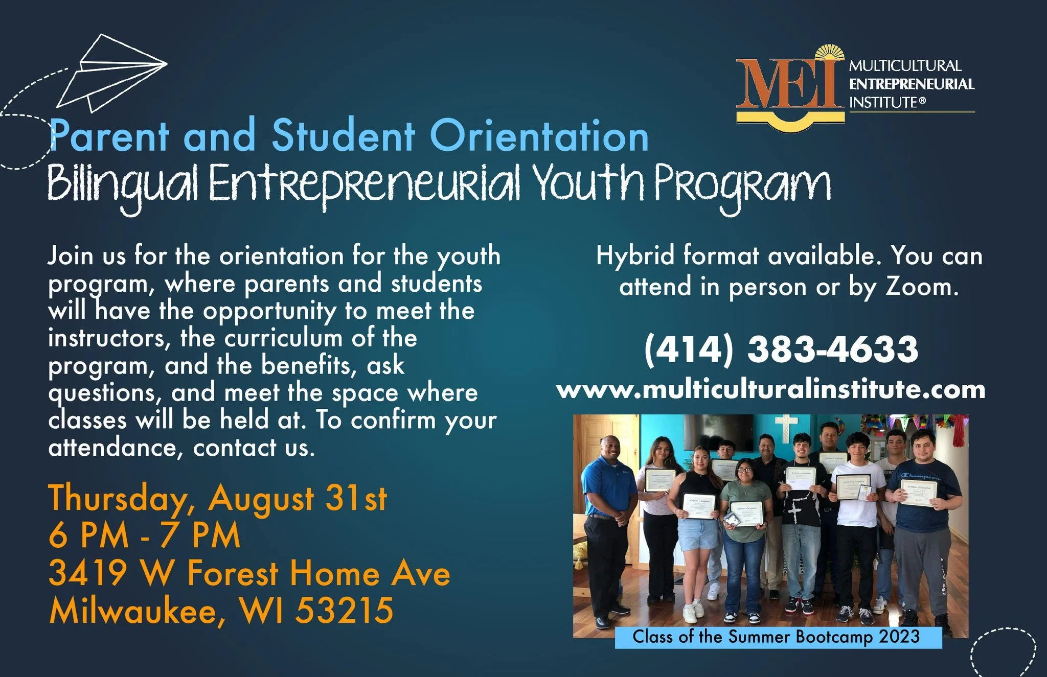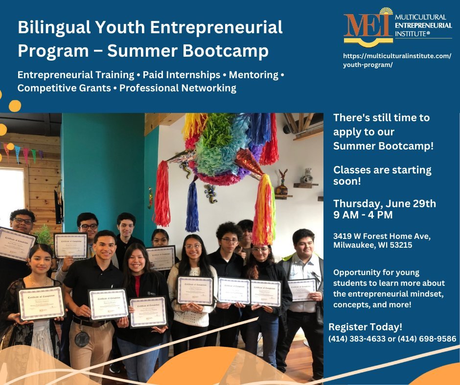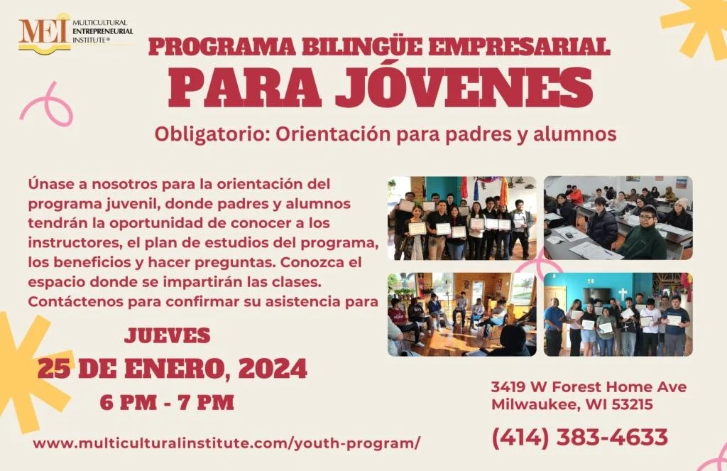 The Multicultural Entrepreneurial Institute hosts a bilingual youth program every spring and fall season of the year. Young adults ages 16-18 are to be exposed to an entrepreneurial mindset. This program provides training, mentoring, paid internships, professional networking, and competitive grants to support young adults interested in exploring entrepreneurship as part of their career or professional development.